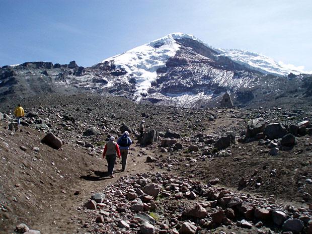 Cestou na chatu Whymper a hora Chimborazo, Ecuador.