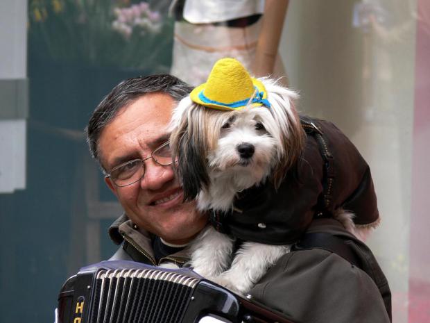 Harmonikář na náměstí ve Schwerinu