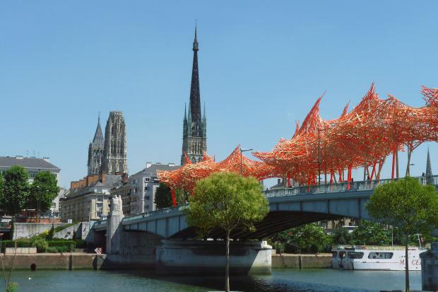 Rouen - pohled na katedrálu od Seiny
