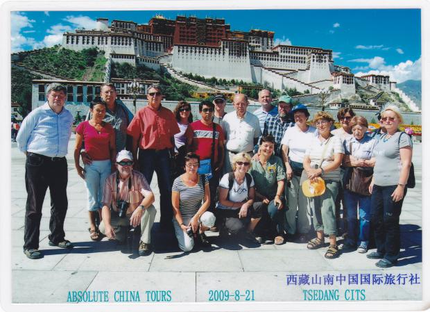 účastníci zájezdu do Číny před palácem Potala, Lhasa, Tibet
