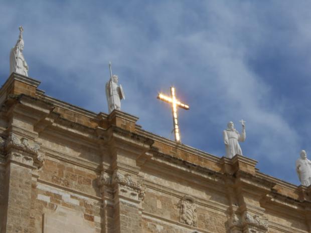 Zlatý kříž nad dómem v Brindisi