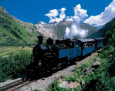 2. den: horský uzel v Andermattu (městečko, 1447 m, mezi 3 průsmyky), pod zasněženými štíty do stanice Realp. Odtud parní historickou horskou ozubnicovou železnicí Furkabahn vysokohorskými polohami při průsmyku Furkapass a do walliské obce Gletsch (1757 m) v údolí Rhôny, doba jízdy 2 h. Úzkou horskou silnicí poštovním busem na vyhlídku na impozantní Rhônský ledovec a na druhý nejvyšší sjízdný švýcarský průsmyk Furkapass (2431 m), čtyřtisícové vrcholky Rhônských a Bernských Alp. Zpět do Realpu a busem na Gotthardský průsmyk (2108 m, starý hospic, hranice kantonu Ticino). N
